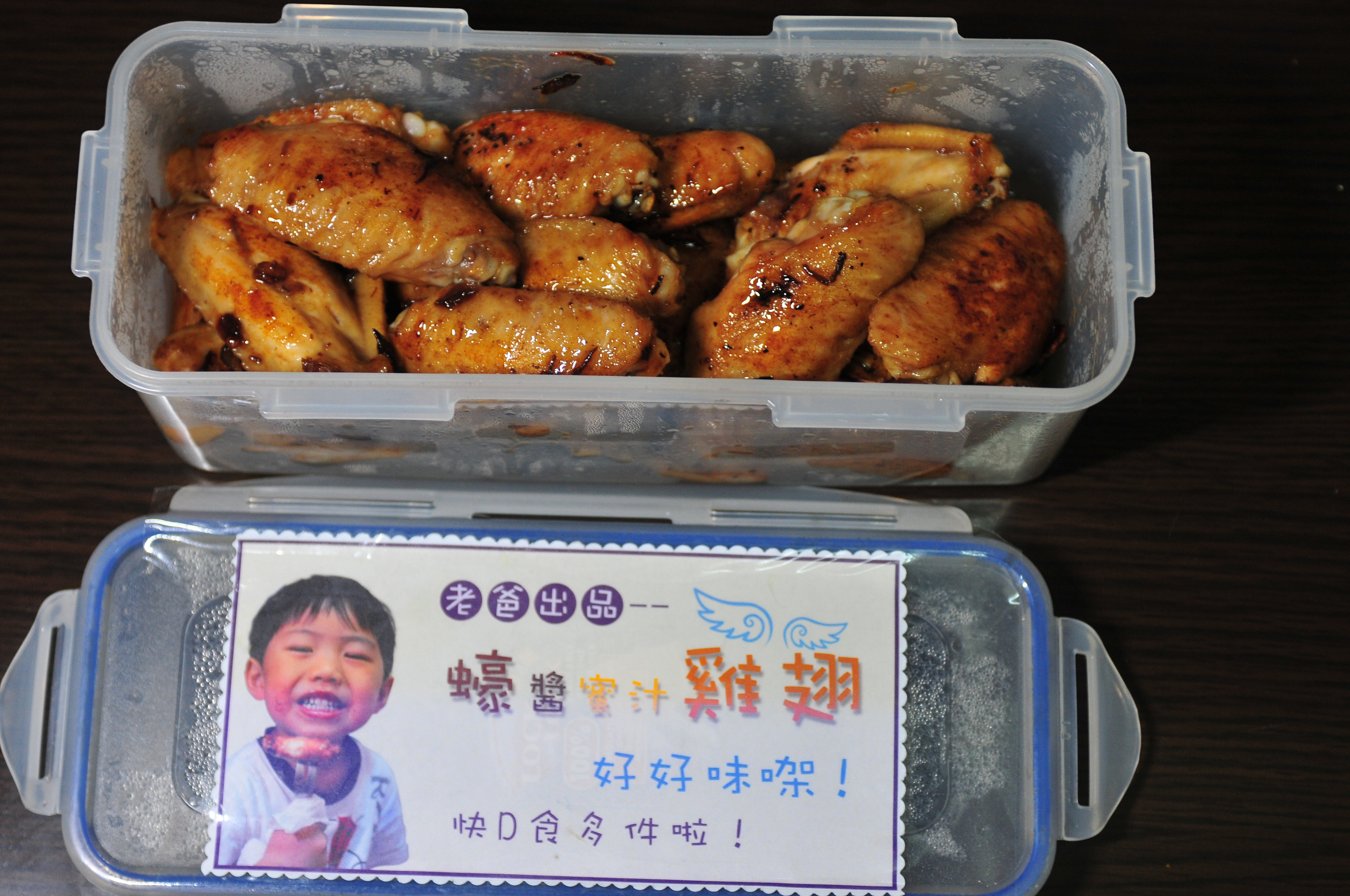 JETJET學校生日會特備美食-蠔醬蜜汁雞翅作者: AlbertLam / 2013 年 9 月 30 日 今天是JETJET升高班後首次生日會,之前JETJET已提早指定生日會要準備的食物,就是之前整過給他吃的“蠔醬蜜汁雞翅”,所以老師問同學們有誰會帶自製食物的舉手時,他就第一個舉手說會帶雞翅。既然愛兒下了承諾,那肯定要實現啦。 今天早上還沒到7時就要起床,精心炮製他送給小朋友的禮物,為了多些豐味選擇,還特別做多了一盒加了黑椒的雞翅。雖然起得早還要擺弄近一小時有點辛苦,但很開心的是,JETJET說食物還算受歡迎。