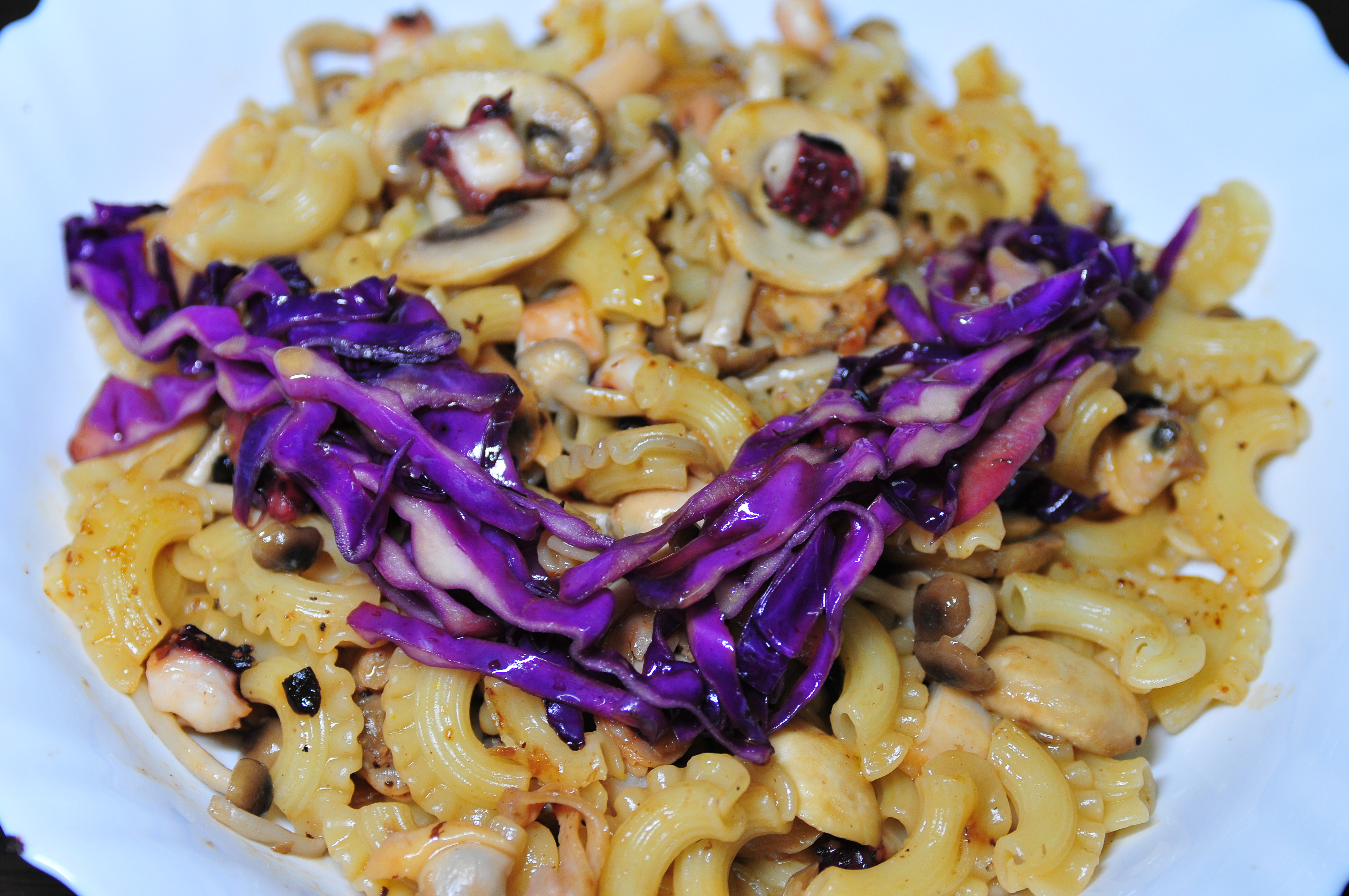 JetJet今早8:30要到一間心儀的直資小學面試,為了他能有夠體力應付,老爸就為他準備了一份營養的美味早餐,主料意粉,配料有:章魚粒、花蛤肉、有機白菇及紫椰菜,除了為JetJet打氣加油之外,更希望能為他帶來好運,能心想事成吧!
