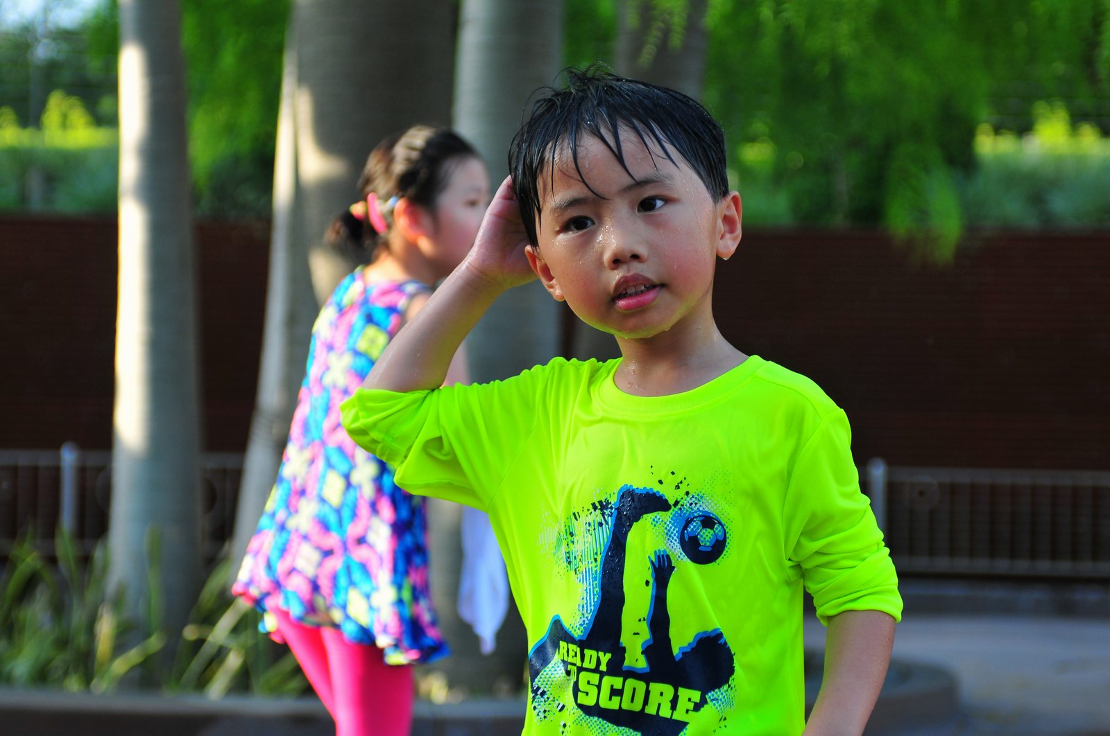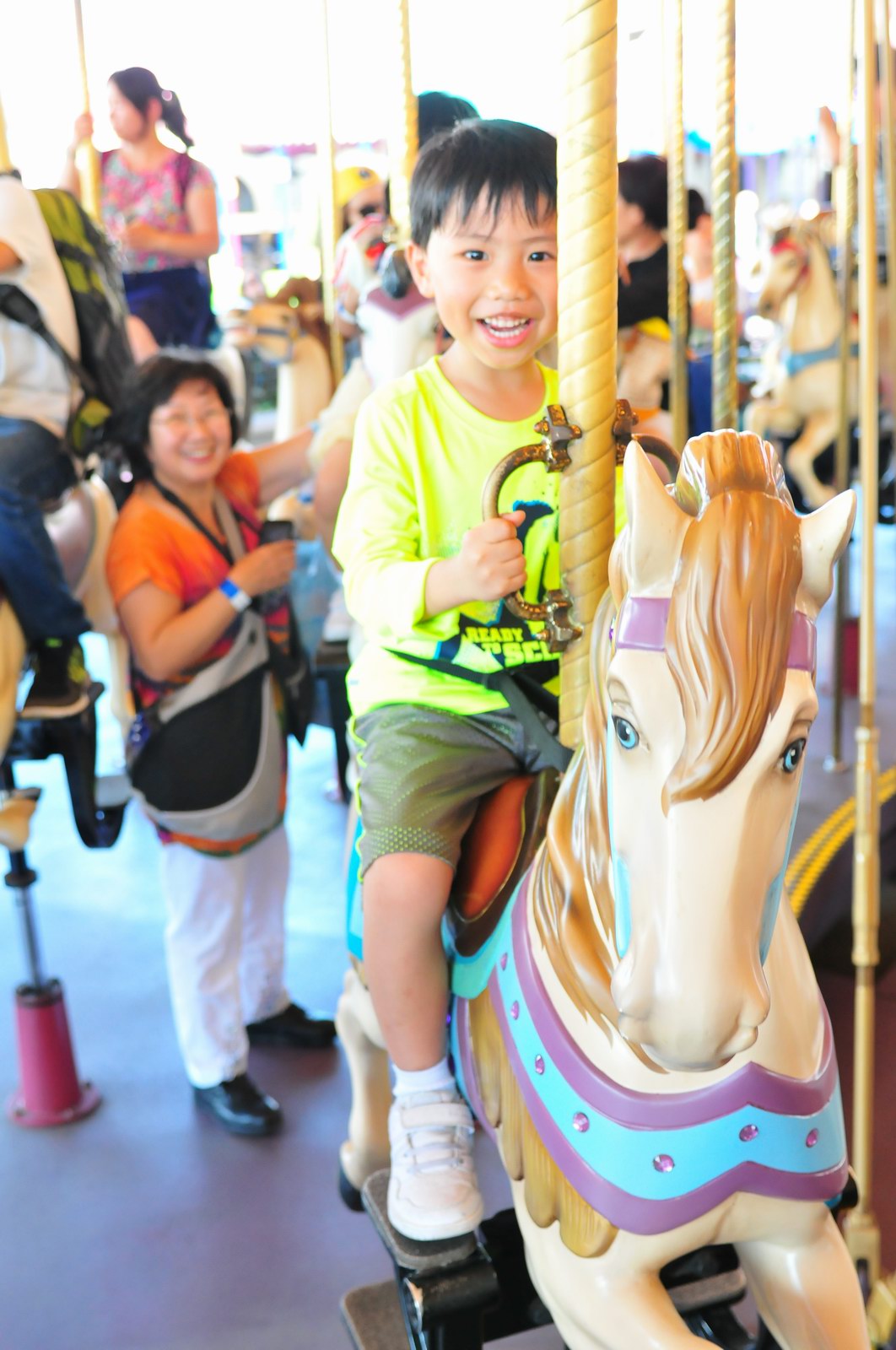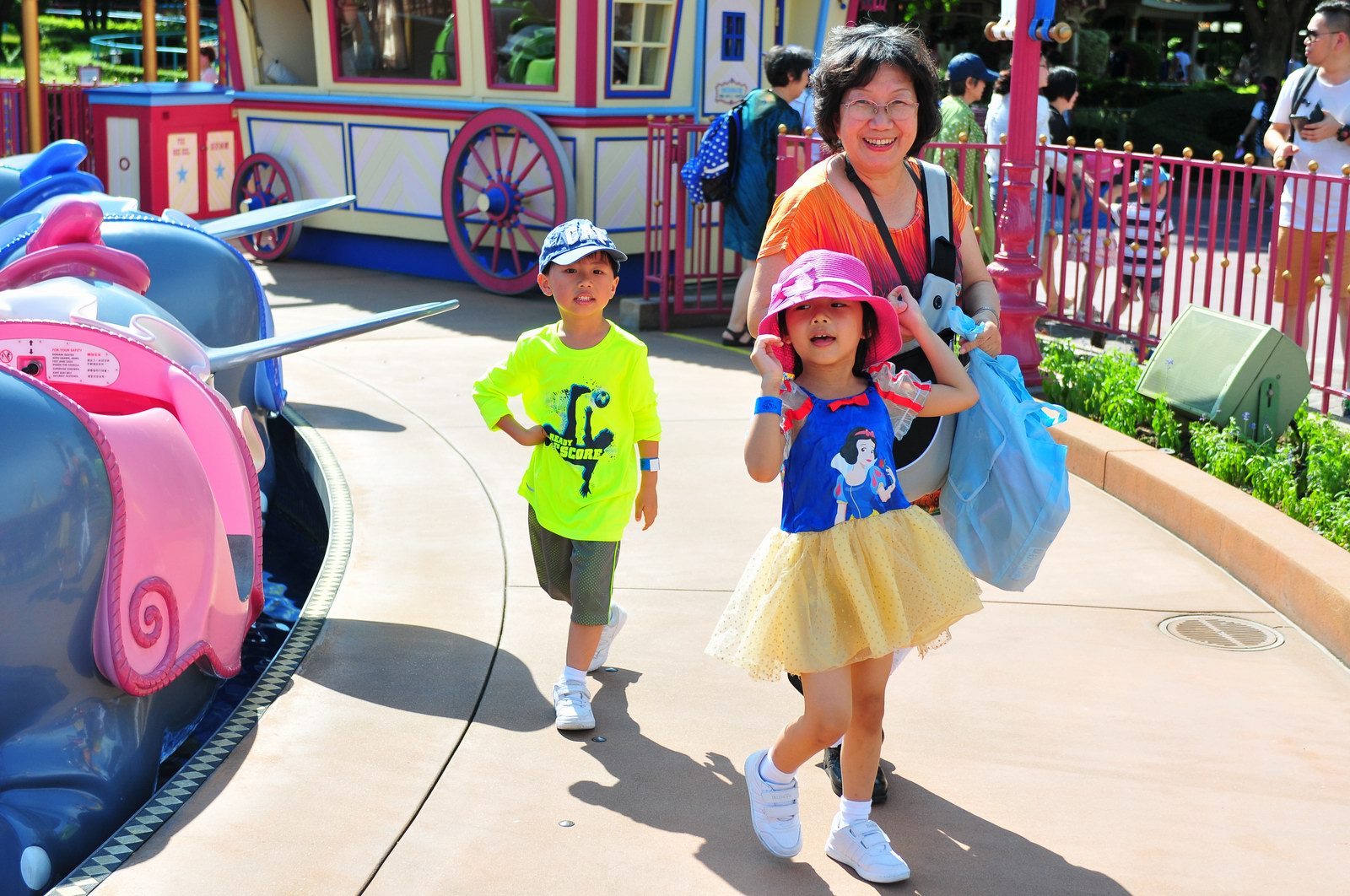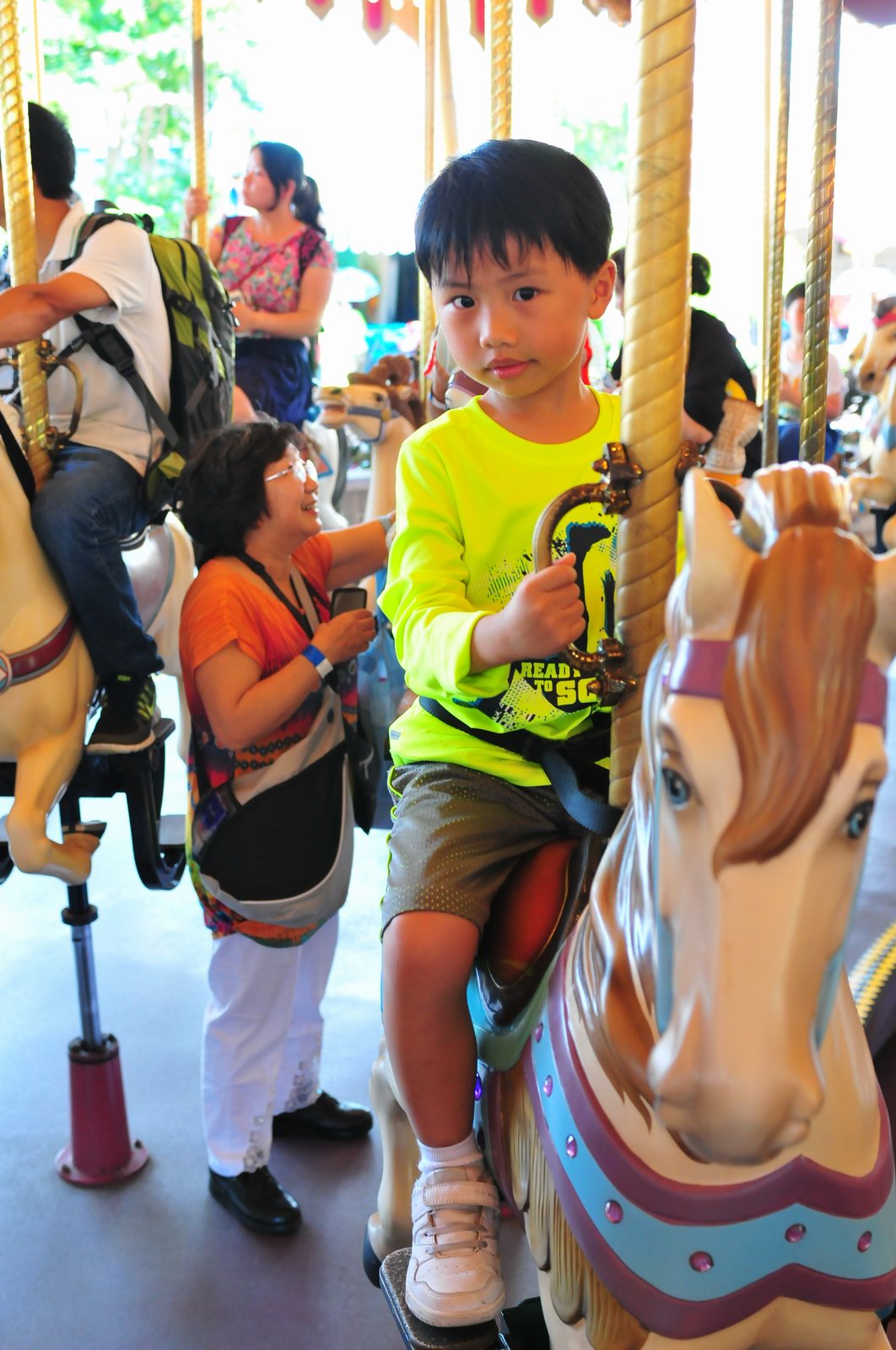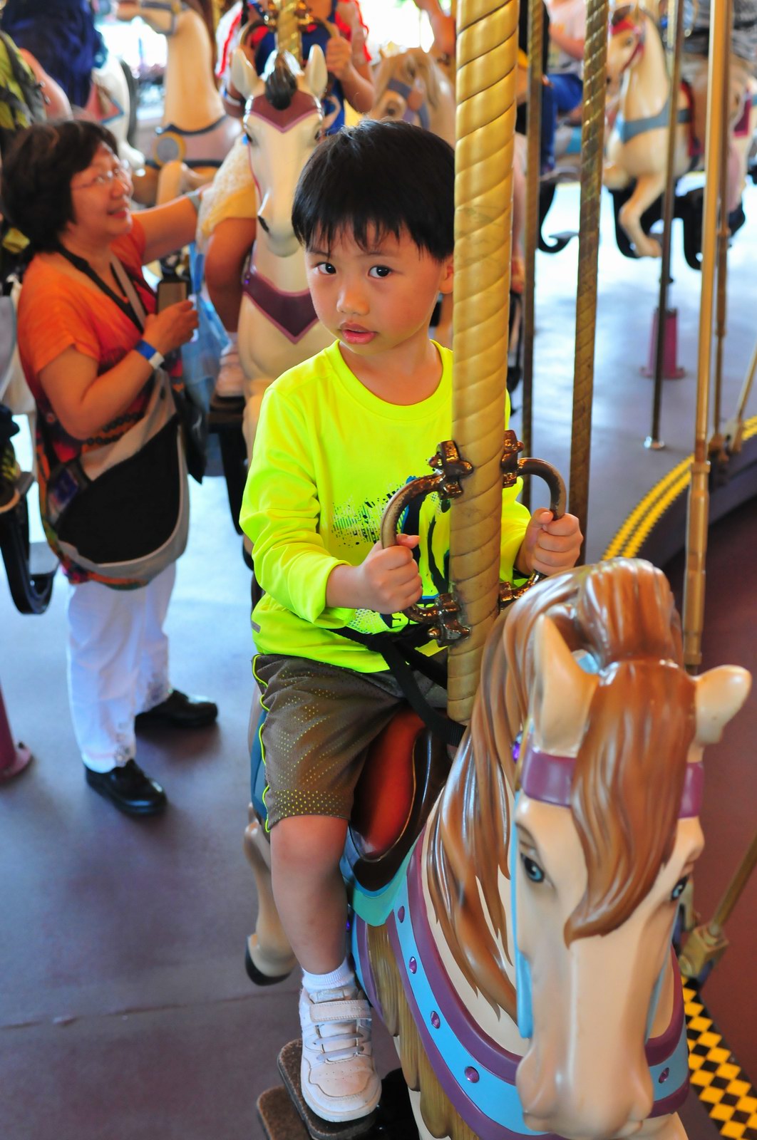 影完相,開始自遊活動時間,由於是星期三,並非樂園假日高峰期,遊園人數不算多,設施輪侯時間並不長,所以JETJET可以很暢順地一口氣玩完多個他喜歡的遊戲,有些特喜歡的還可以連玩多次,很是盡興,這種好處是平時節假日無法享受的。開心時間過得快,黃昏將至,我們去到JETJET的另一個至愛樂園,一個給小朋友消暑玩耍的噴水戲樂區。你會發現,自由自在、無拘放縱的戲樂對於小朋友是多麼的渴望與享受,Jet在水樂園盡情奔跑、跳躍,任由水花氣霧霖沐,無懼衣服鞋襪濕透。從他的歡樂、雀躍程度,樂園其他機動設施及節目已相比失色多了。JET在嬉水區玩了整一小時,直至天色已暗,才依依不舍踏入歸程。