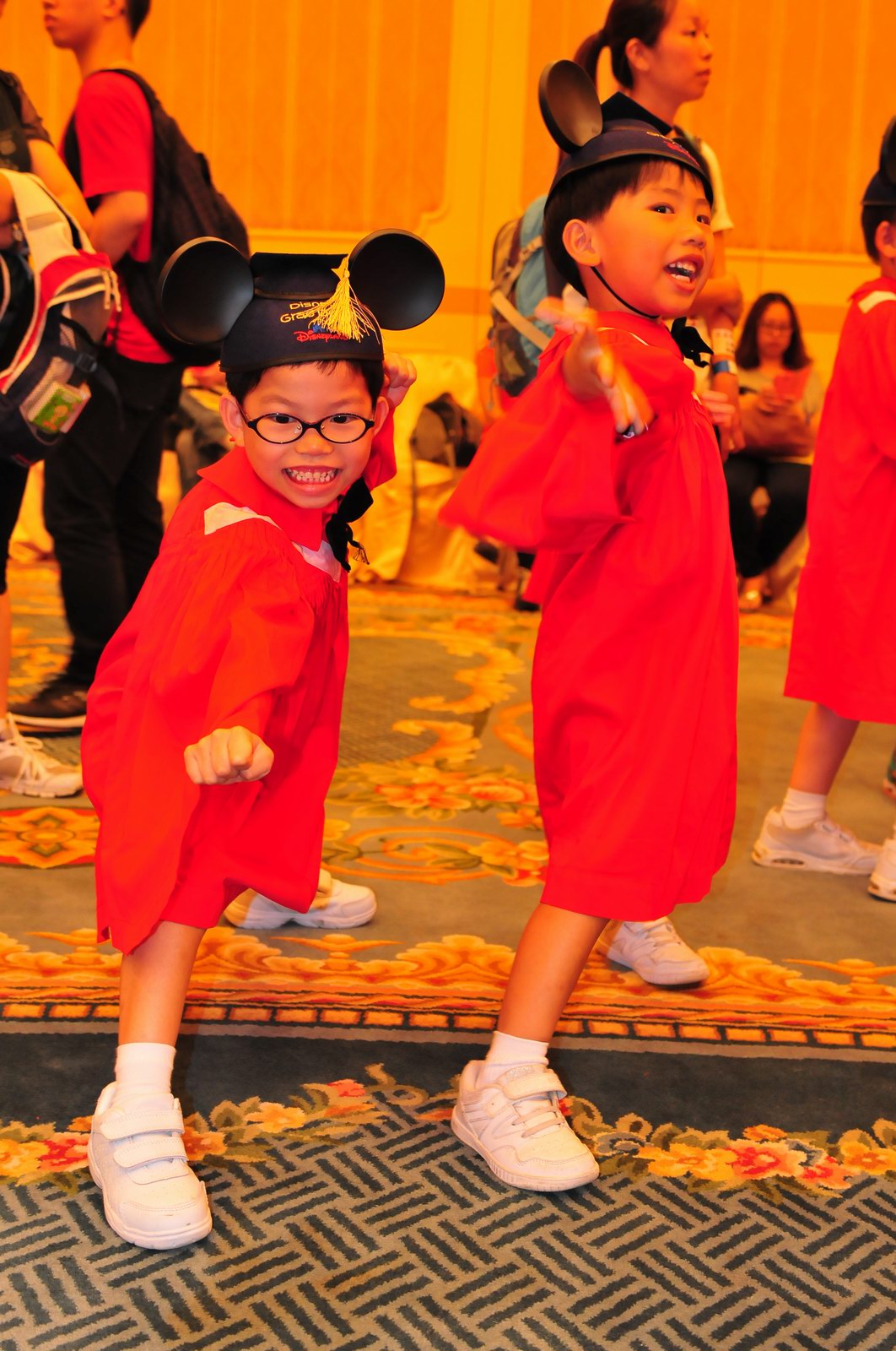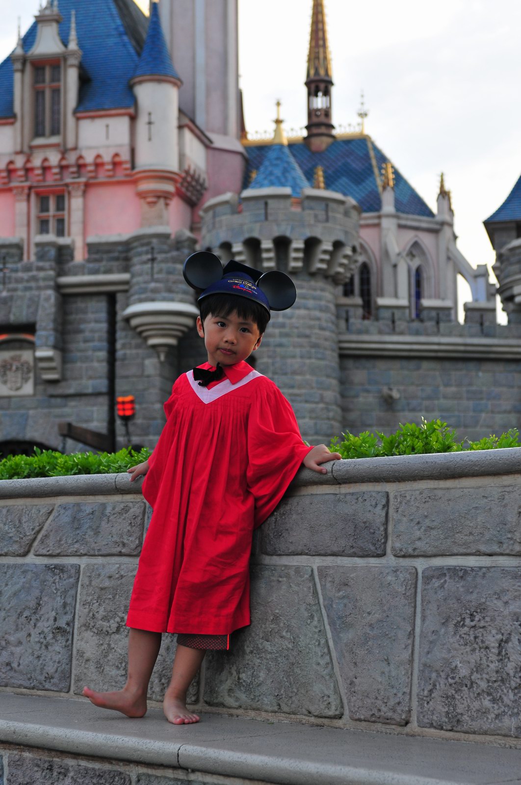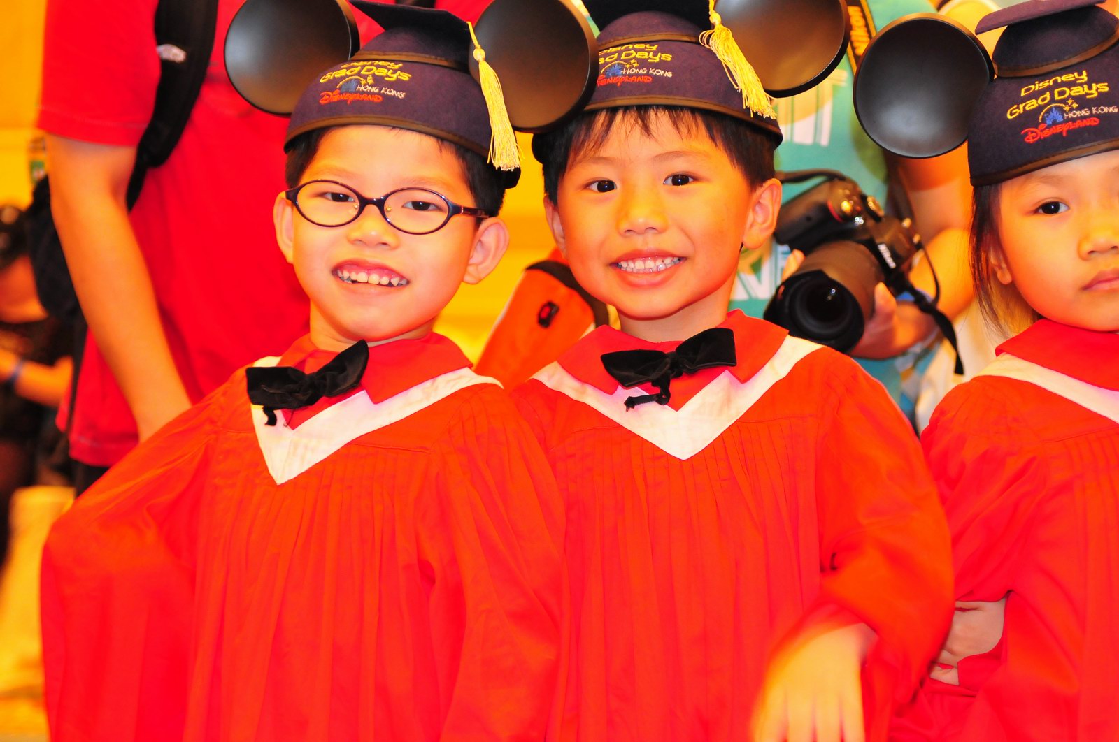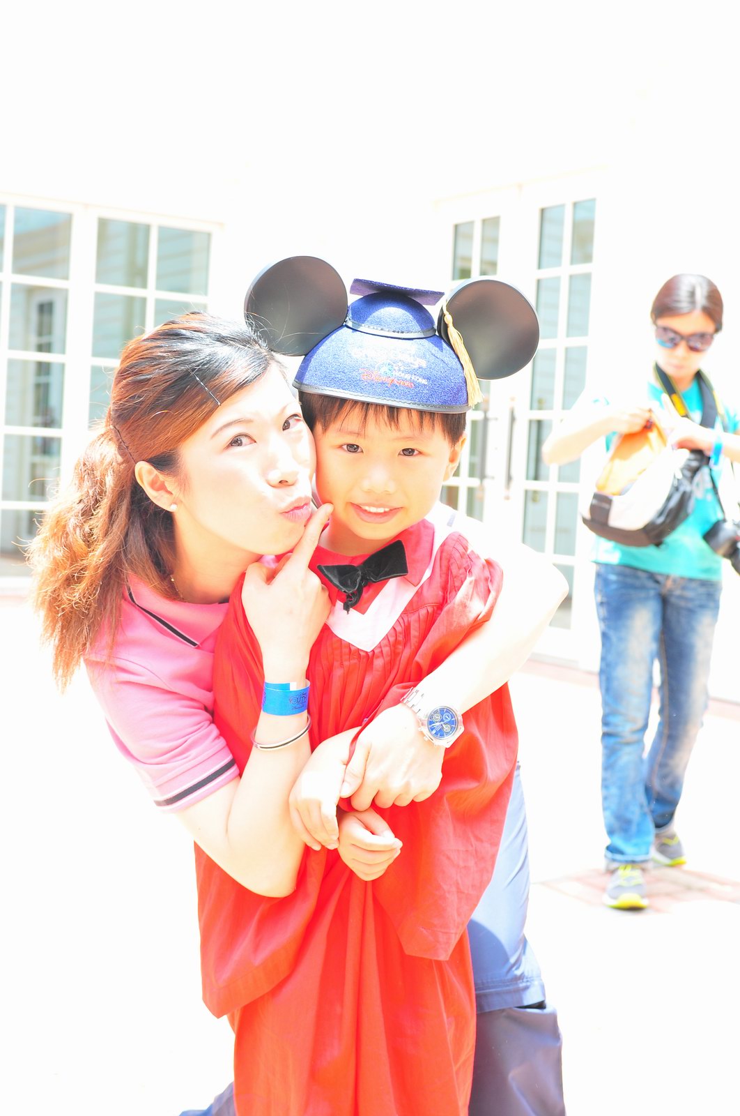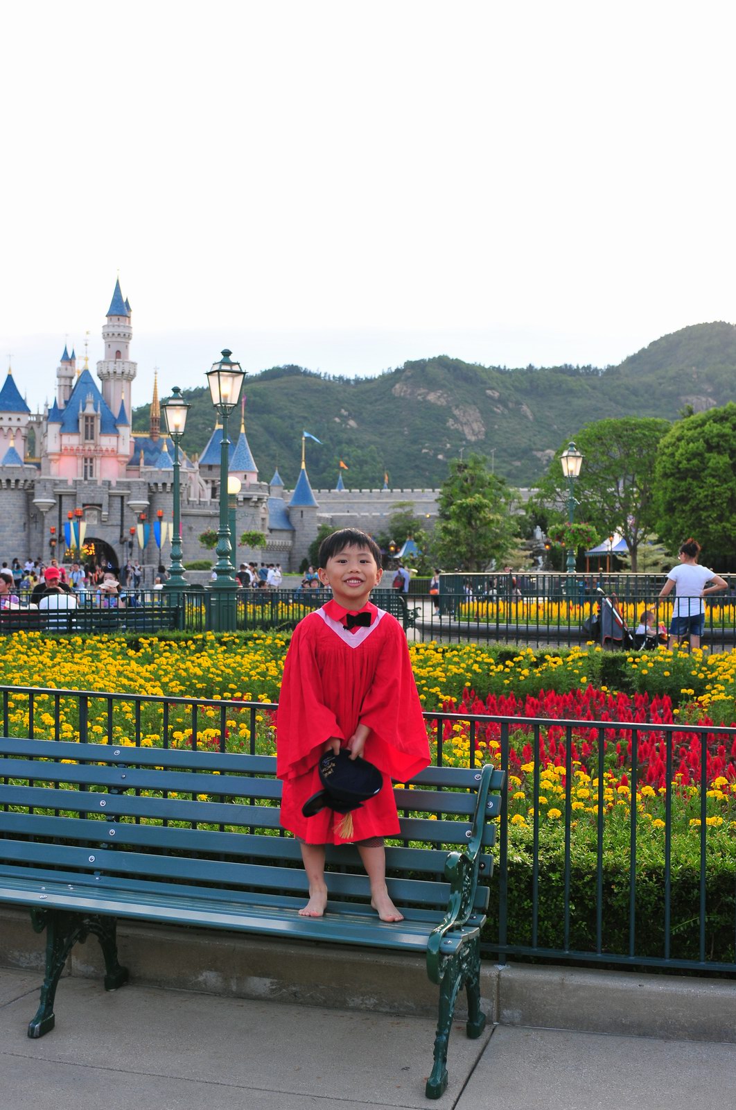 今天早上10時多,坐幼稚園的旅游巴約半小時就到達迪士尼酒店,由於幼稚園畢業班人數眾多,輪侯時間較長,期間正好讓小朋友借機玩耍嬉樂一翻,同學們三五成群或平時最熟悉的玩伴一起,或相互嬉戲、或齊唱畢業歌,場面歡樂感人,讓家長們都有了年輕的感覺。到了影相時間,各家庭的影相代表蜂擁至拍攝區,搶著有利位置輪侯捕足最佳鏡頭。各類設備神器皆有、手機、平板、傻瓜機、攝錄機、長短鏡頭單反齊齊現身,在這個人手一機全民皆攝影師的時代,你會發現就算手執專業單反相機的優越感會蕩然無存,長短焦的優勢也無處發揮,因為在你舉起相機瞄準對焦時,要不發現前景被那些趕在前方取近景的手機及偌大的平板遮蔽了鏡頭占了大部份景觀,更傷心的是你慶幸終於突圍而出找到一線空隙取得理想構圖按下快門時,冷不防一個手機或一個大平板就忽然伸到你的鏡頭前,搶去你的視線。所以,現在每遇到此場面,就會不期然有種失落感,懷念起以前智能設備還沒普及的那個年代,手執專業相機那份尊榮和便利,歎此風光已大江東去永不復還了。