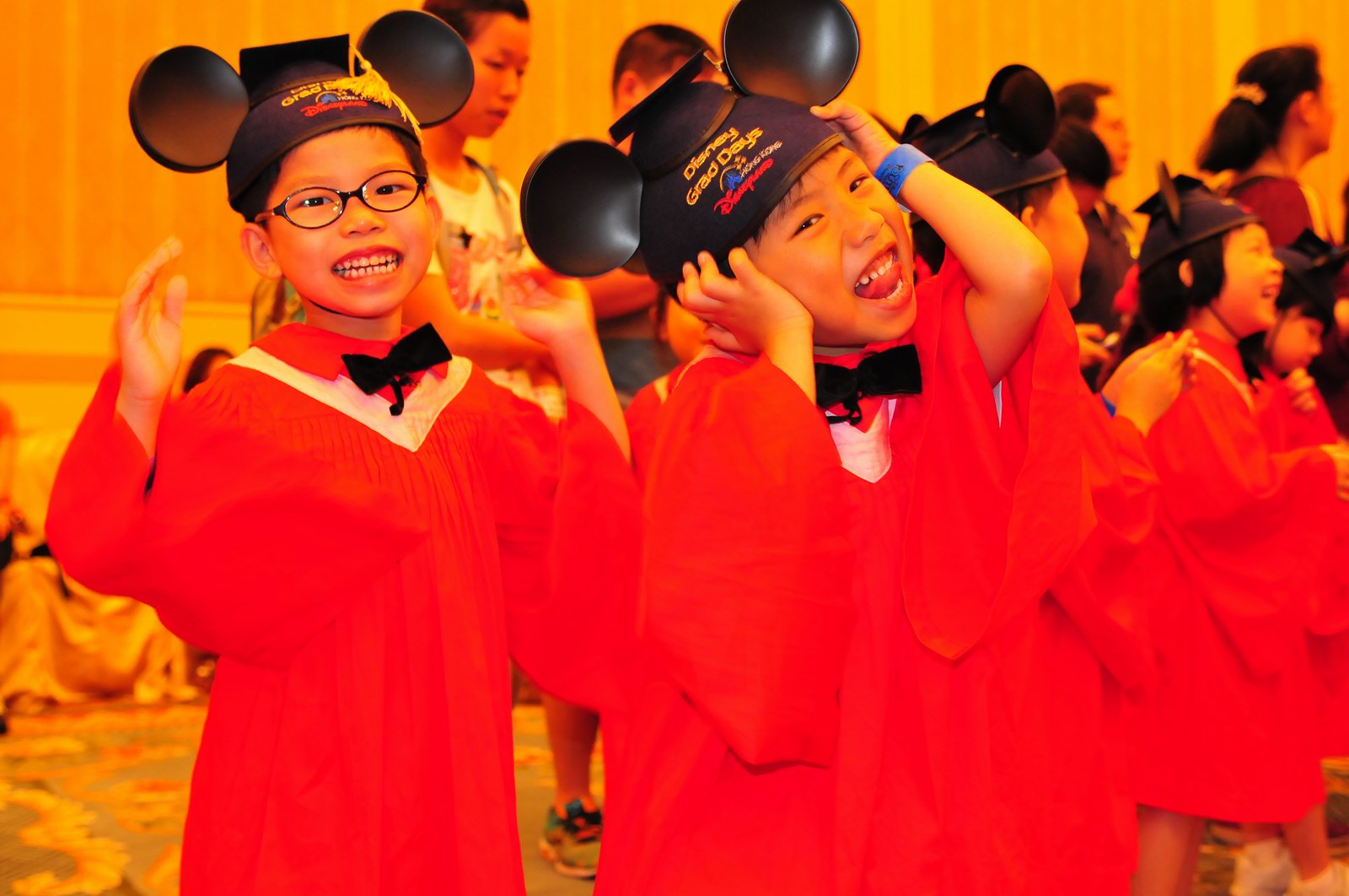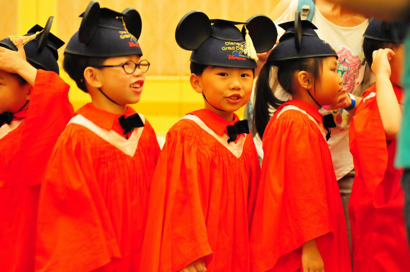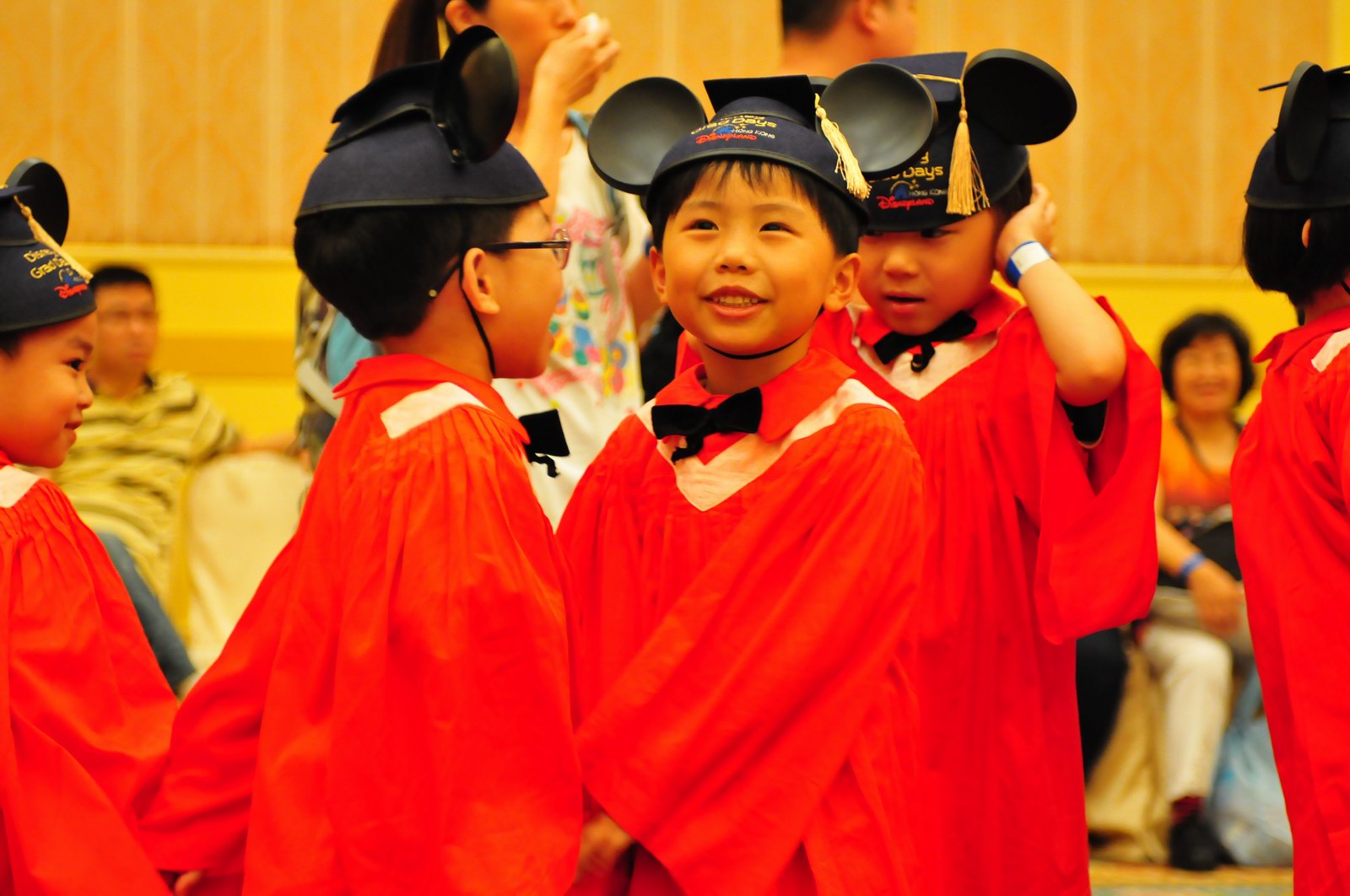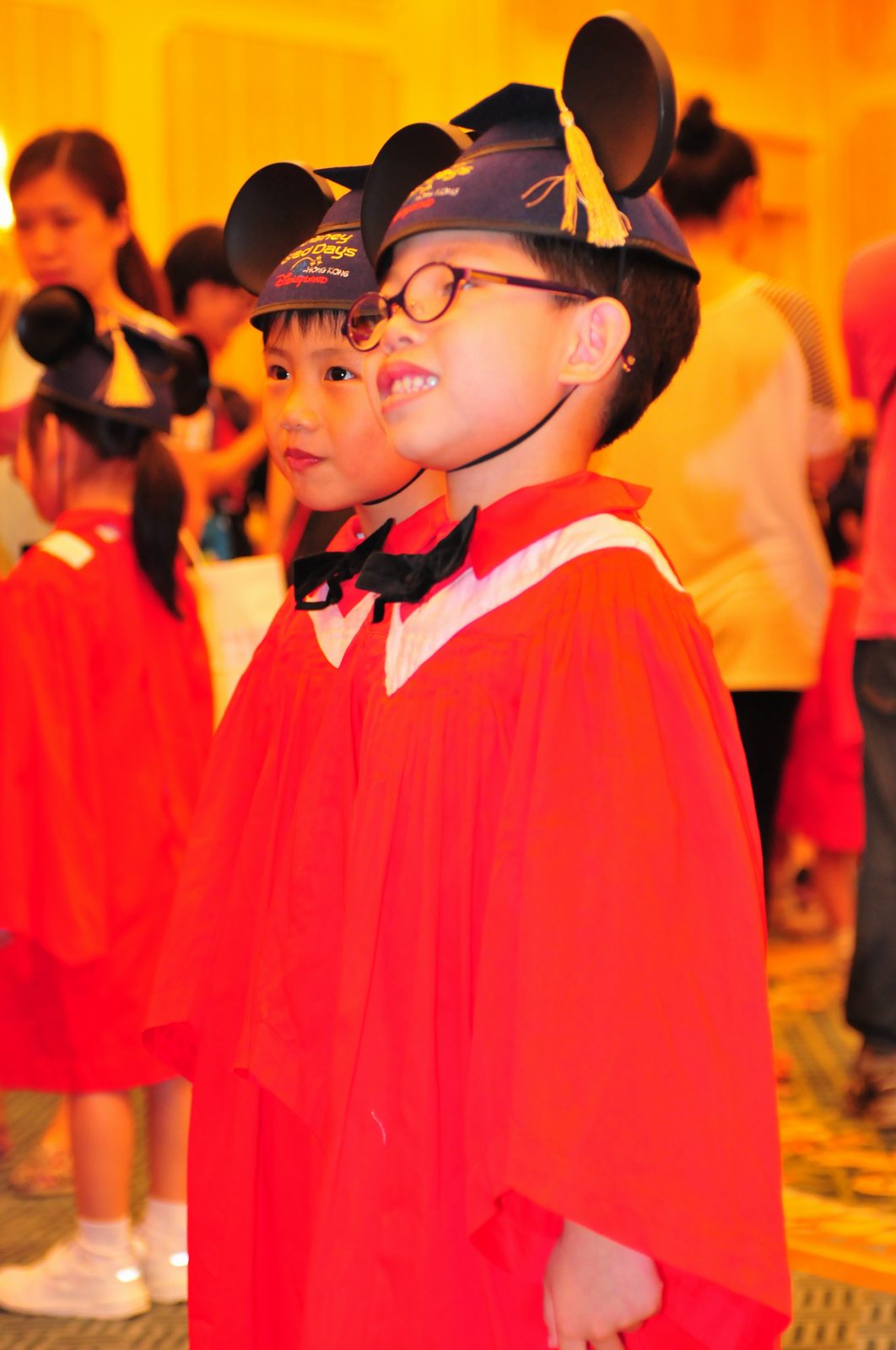 今天早上10時多,坐幼稚園的旅游巴約半小時就到達迪士尼酒店,由於幼稚園畢業班人數眾多,輪侯時間較長,期間正好讓小朋友借機玩耍嬉樂一翻,同學們三五成群或平時最熟悉的玩伴一起,或相互嬉戲、或齊唱畢業歌,場面歡樂感人,讓家長們都有了年輕的感覺。到了影相時間,各家庭的影相代表蜂擁至拍攝區,搶著有利位置輪侯捕足最佳鏡頭。各類設備神器皆有、手機、平板、傻瓜機、攝錄機、長短鏡頭單反齊齊現身,在這個人手一機全民皆攝影師的時代,你會發現就算手執專業單反相機的優越感會蕩然無存,長短焦的優勢也無處發揮,因為在你舉起相機瞄準對焦時,要不發現前景被那些趕在前方取近景的手機及偌大的平板遮蔽了鏡頭占了大部份景觀,更傷心的是你慶幸終於突圍而出找到一線空隙取得理想構圖按下快門時,冷不防一個手機或一個大平板就忽然伸到你的鏡頭前,搶去你的視線。所以,現在每遇到此場面,就會不期然有種失落感,懷念起以前智能設備還沒普及的那個年代,手執專業相機那份尊榮和便利,歎此風光已大江東去永不復還了。
