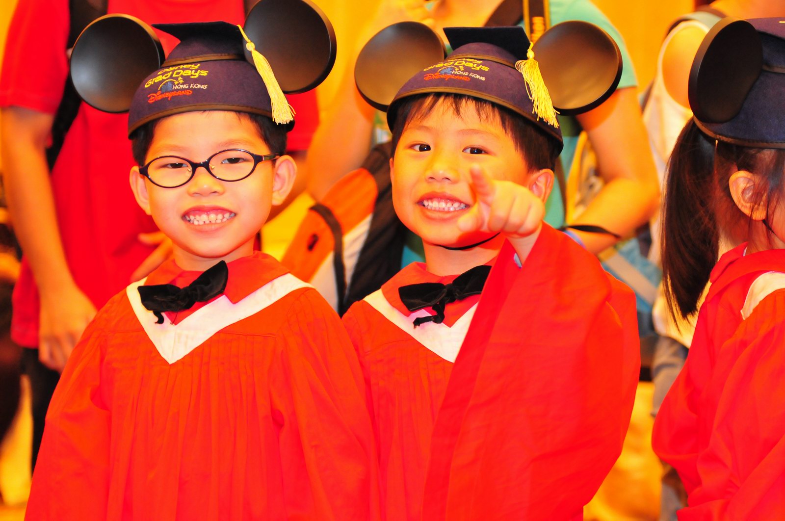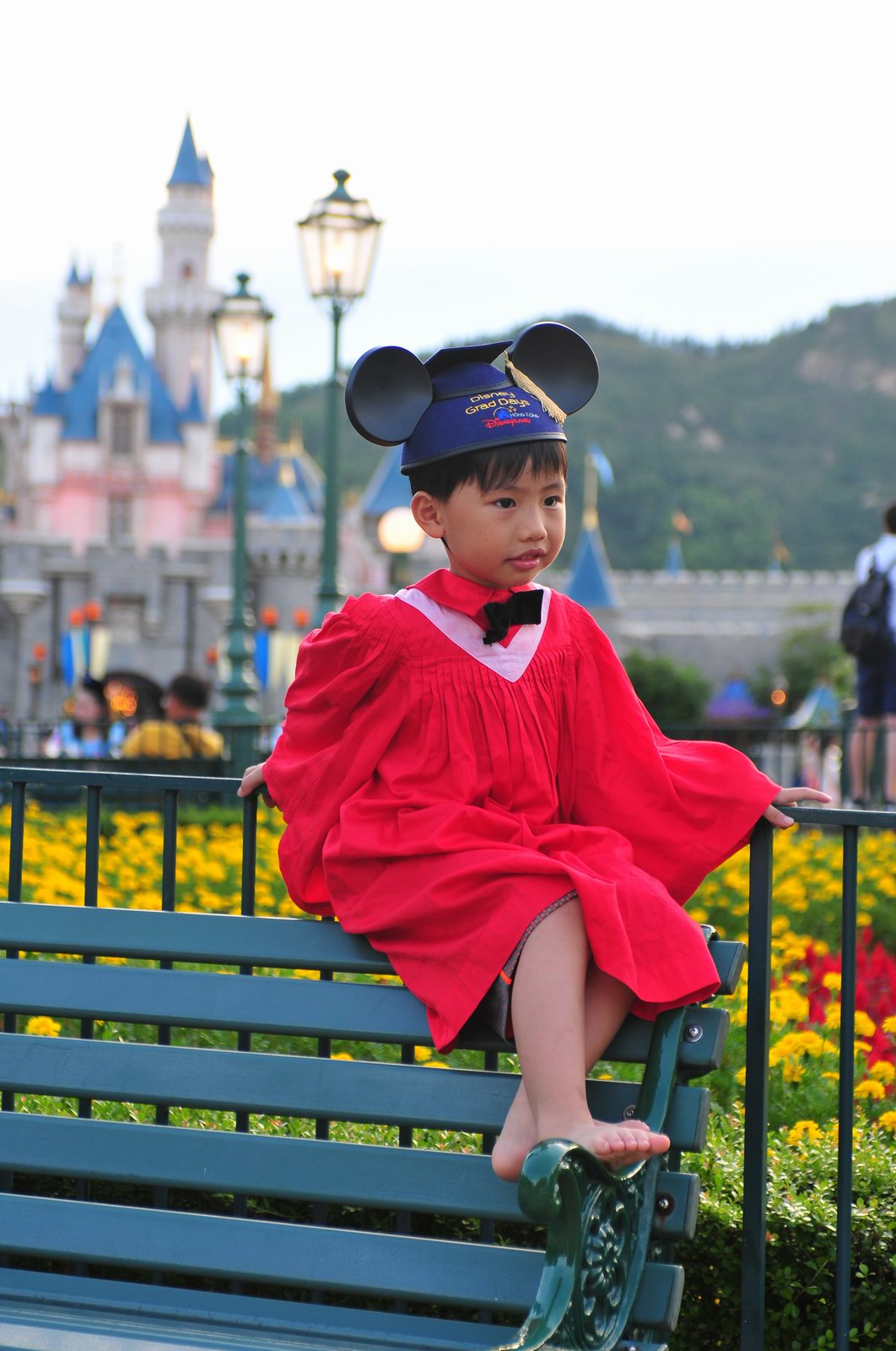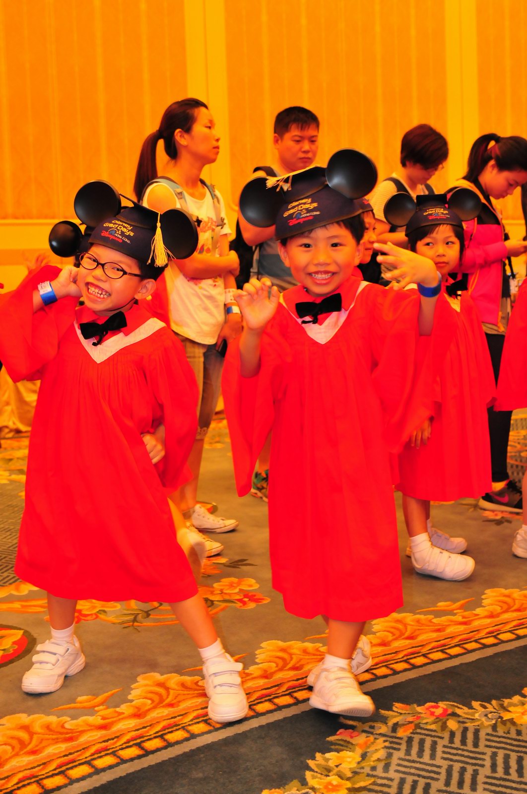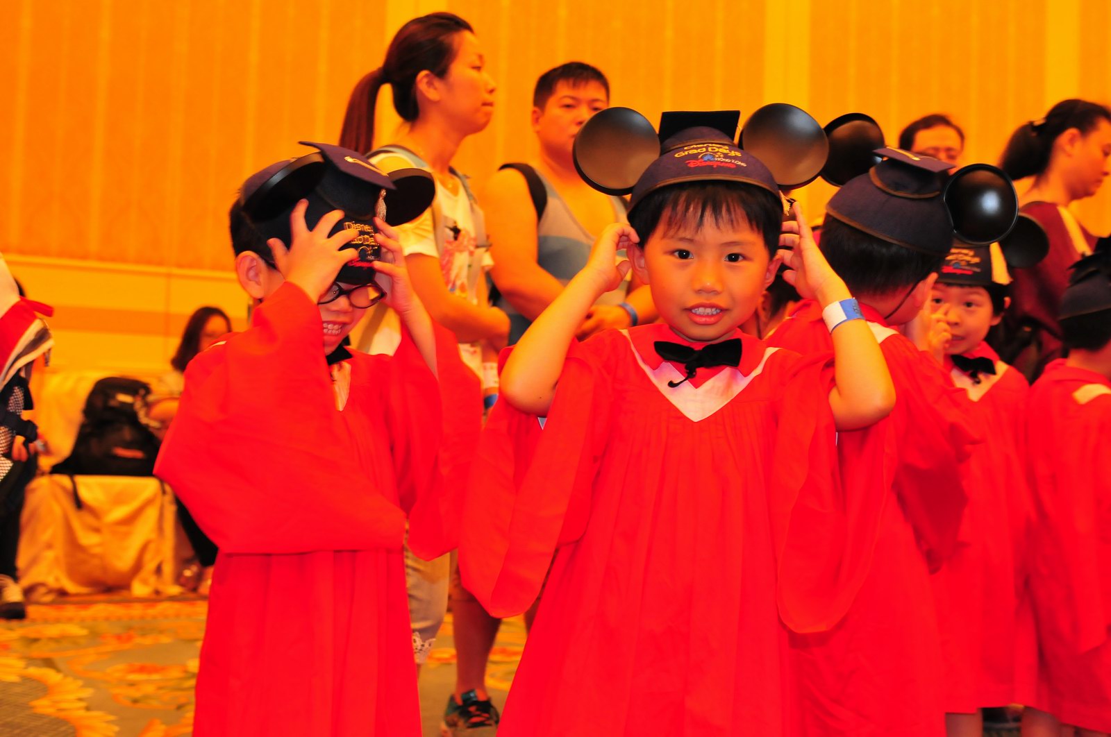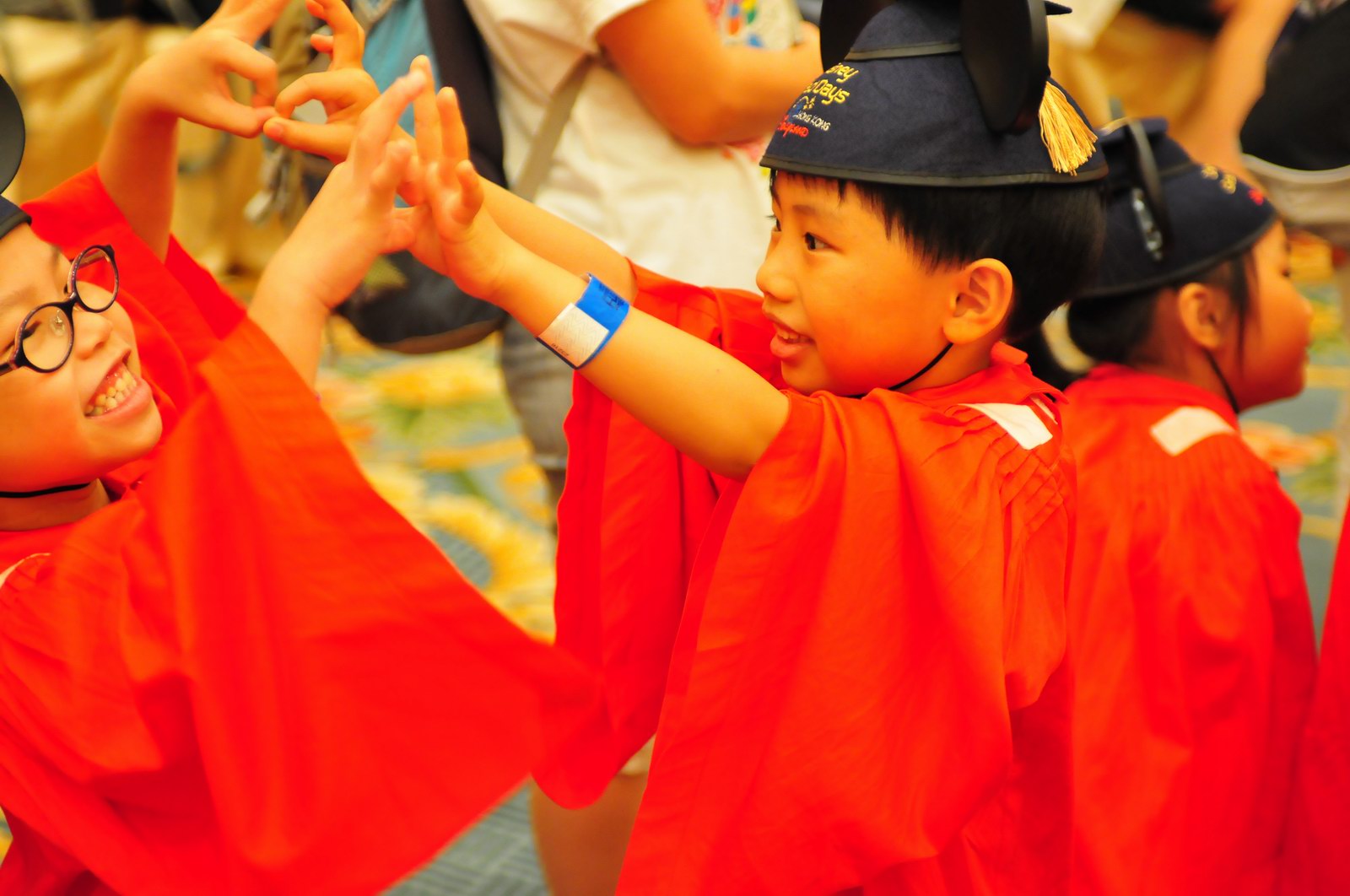 今天早上10時多,坐幼稚園的旅游巴約半小時就到達迪士尼酒店,由於幼稚園畢業班人數眾多,輪侯時間較長,期間正好讓小朋友借機玩耍嬉樂一翻,同學們三五成群或平時最熟悉的玩伴一起,或相互嬉戲、或齊唱畢業歌,場面歡樂感人,讓家長們都有了年輕的感覺。到了影相時間,各家庭的影相代表蜂擁至拍攝區,搶著有利位置輪侯捕足最佳鏡頭。各類設備神器皆有、手機、平板、傻瓜機、攝錄機、長短鏡頭單反齊齊現身,在這個人手一機全民皆攝影師的時代,你會發現就算手執專業單反相機的優越感會蕩然無存,長短焦的優勢也無處發揮,因為在你舉起相機瞄準對焦時,要不發現前景被那些趕在前方取近景的手機及偌大的平板遮蔽了鏡頭占了大部份景觀,更傷心的是你慶幸終於突圍而出找到一線空隙取得理想構圖按下快門時,冷不防一個手機或一個大平板就忽然伸到你的鏡頭前,搶去你的視線。所以,現在每遇到此場面,就會不期然有種失落感,懷念起以前智能設備還沒普及的那個年代,手執專業相機那份尊榮和便利,歎此風光已大江東去永不復還了。