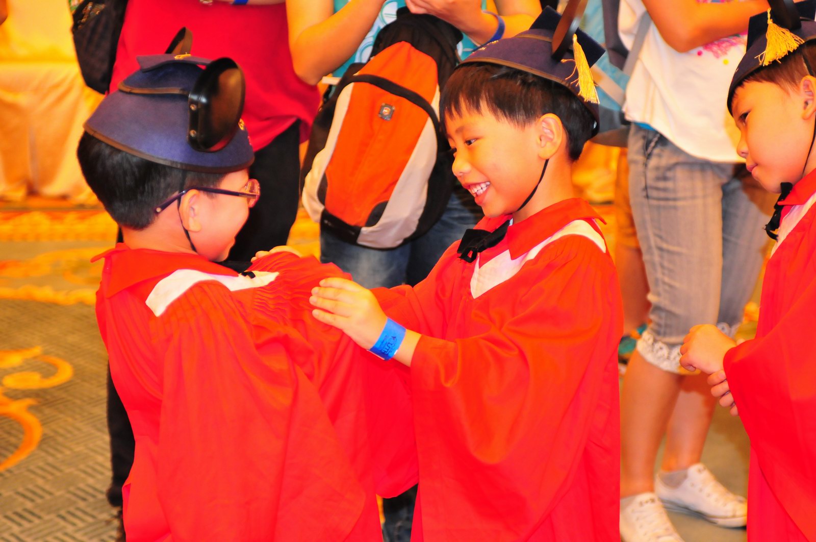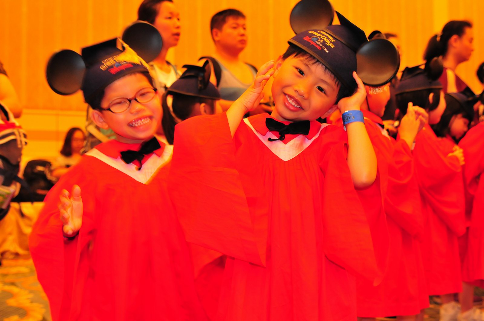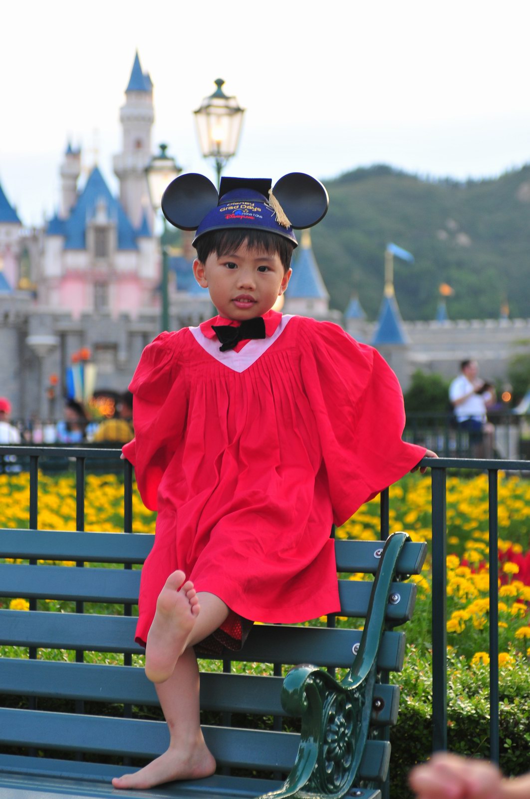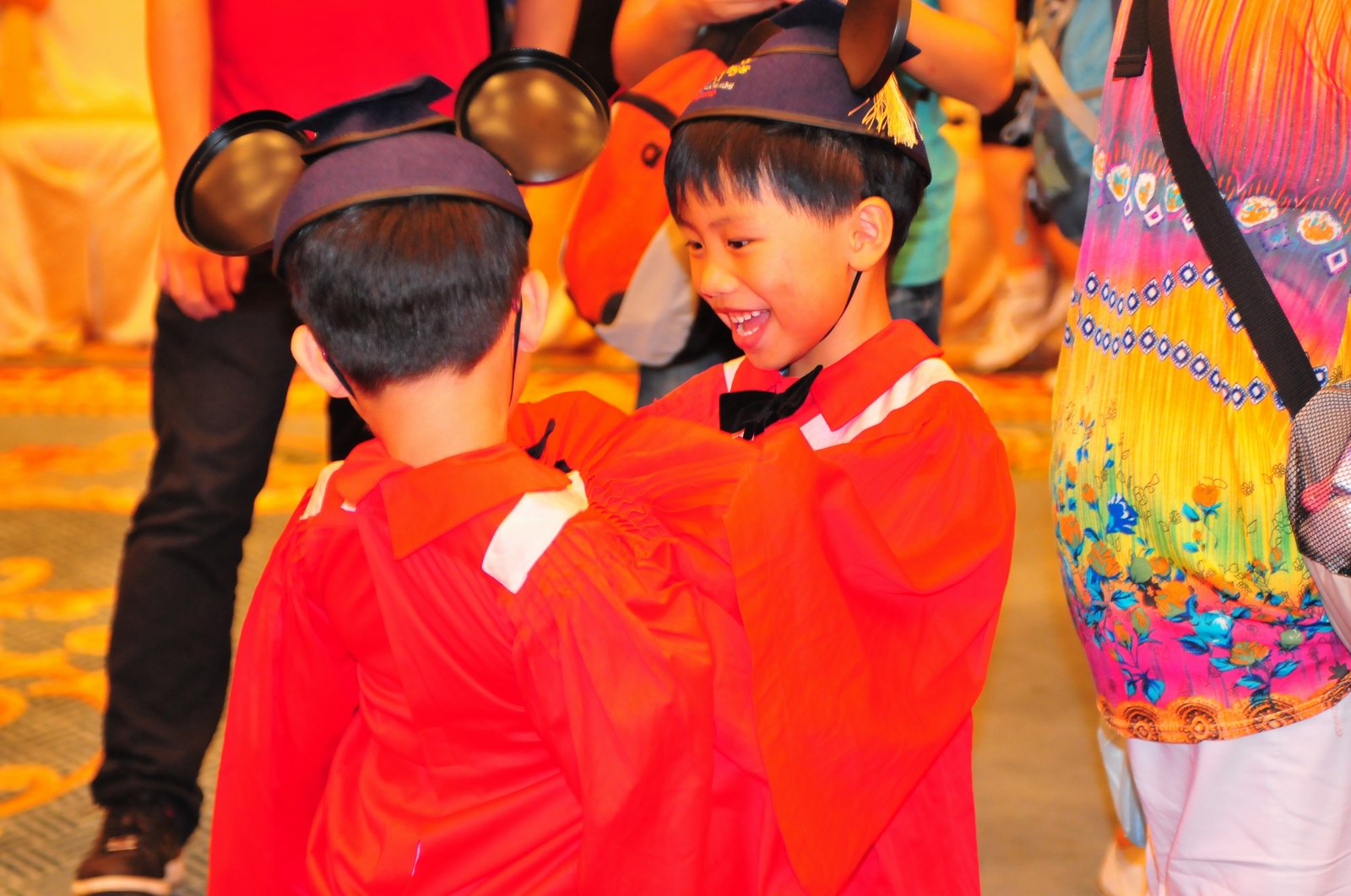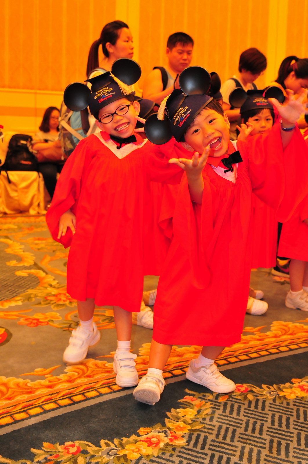 今天早上10時多,坐幼稚園的旅游巴約半小時就到達迪士尼酒店,由於幼稚園畢業班人數眾多,輪侯時間較長,期間正好讓小朋友借機玩耍嬉樂一翻,同學們三五成群或平時最熟悉的玩伴一起,或相互嬉戲、或齊唱畢業歌,場面歡樂感人,讓家長們都有了年輕的感覺。到了影相時間,各家庭的影相代表蜂擁至拍攝區,搶著有利位置輪侯捕足最佳鏡頭。各類設備神器皆有、手機、平板、傻瓜機、攝錄機、長短鏡頭單反齊齊現身,在這個人手一機全民皆攝影師的時代,你會發現就算手執專業單反相機的優越感會蕩然無存,長短焦的優勢也無處發揮,因為在你舉起相機瞄準對焦時,要不發現前景被那些趕在前方取近景的手機及偌大的平板遮蔽了鏡頭占了大部份景觀,更傷心的是你慶幸終於突圍而出找到一線空隙取得理想構圖按下快門時,冷不防一個手機或一個大平板就忽然伸到你的鏡頭前,搶去你的視線。所以,現在每遇到此場面,就會不期然有種失落感,懷念起以前智能設備還沒普及的那個年代,手執專業相機那份尊榮和便利,歎此風光已大江東去永不復還了。