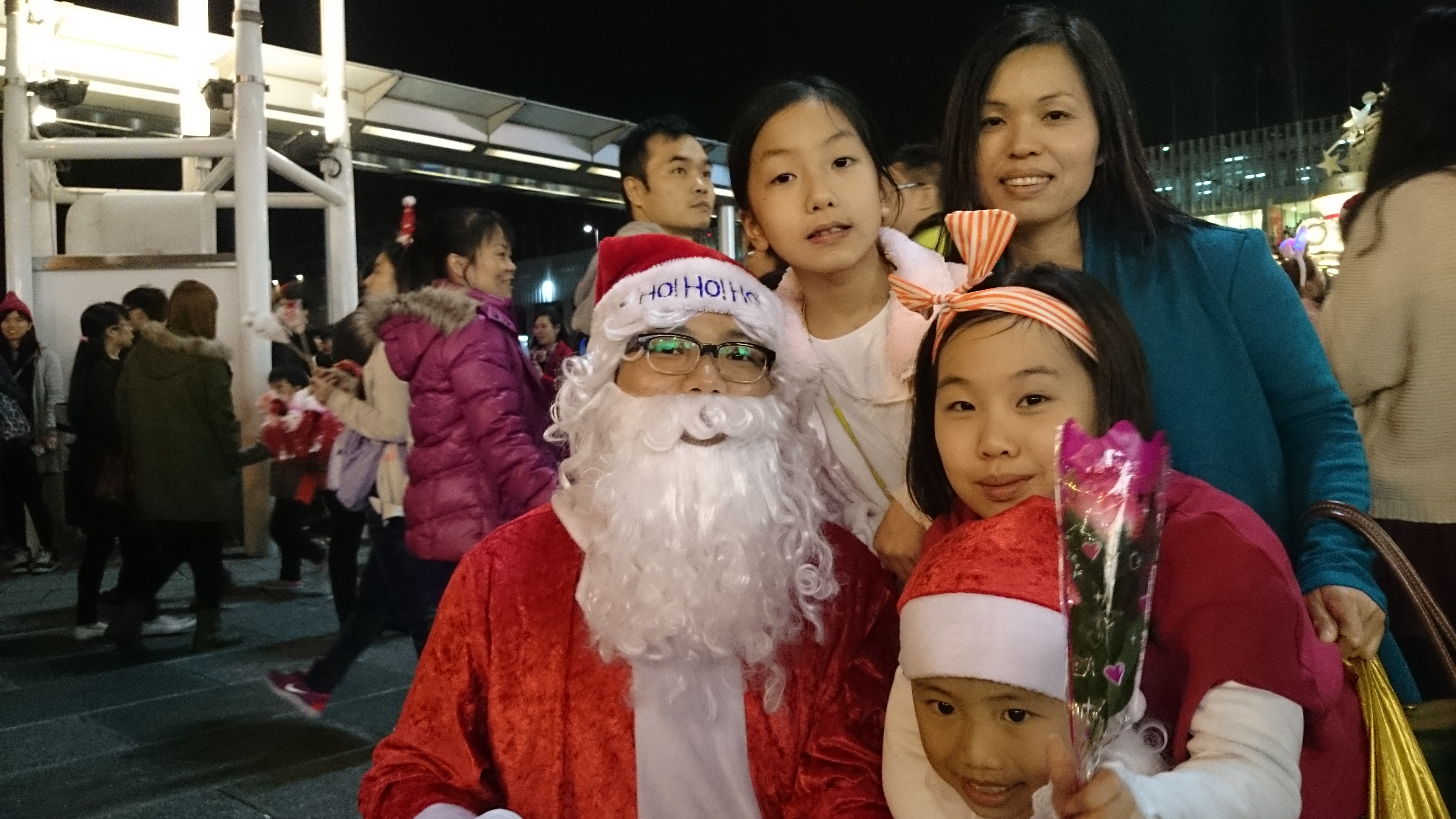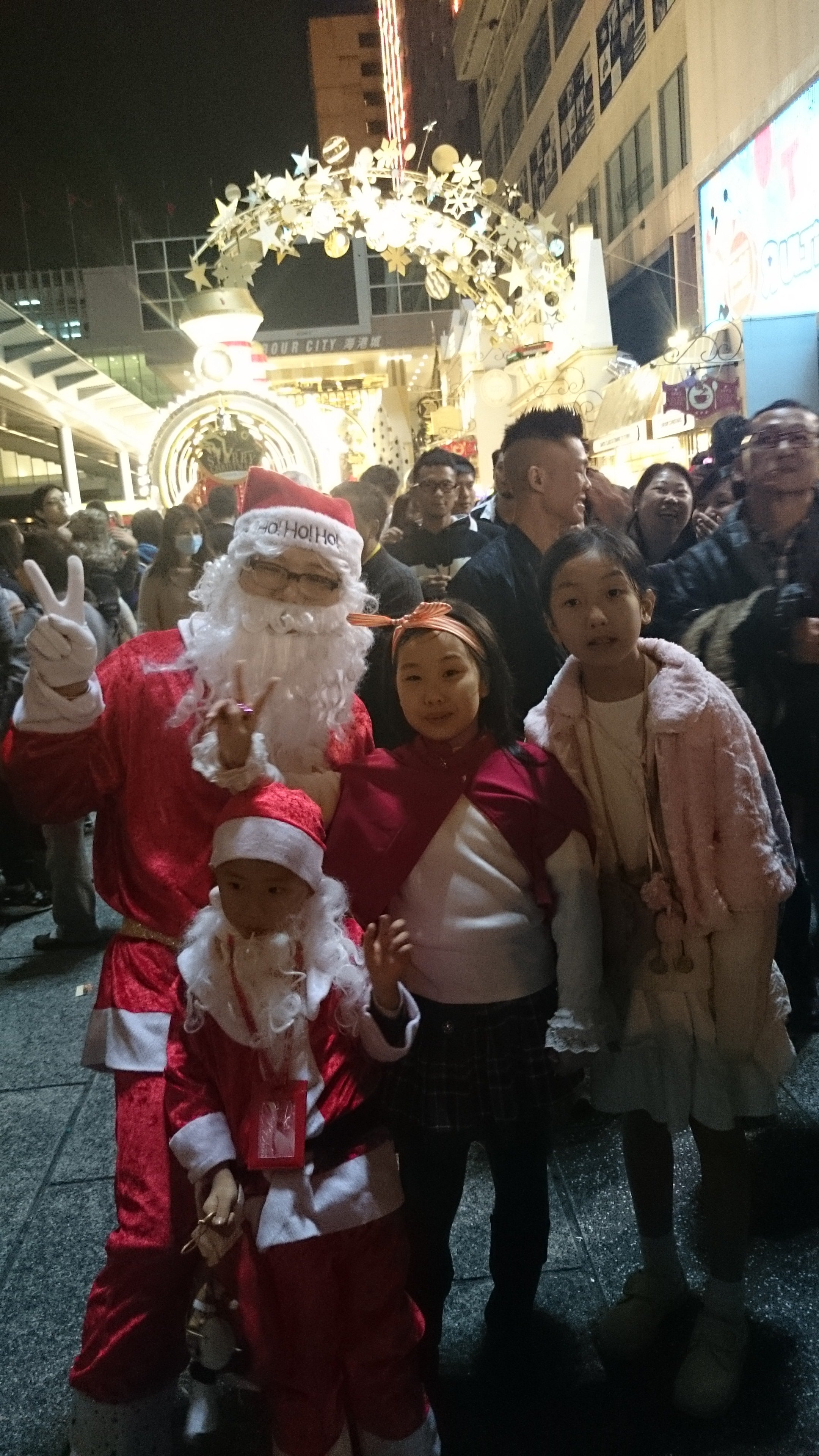 自2011年起每年的平安夜與老爸扮演聖誕老人自發到尖沙咀充當旅游大使已成慣例,任務是派送小禮物、與游人合照,將歡樂與大眾共享,增加氣氛令節日感覺更溫馨濃重。無可置疑聖誕老人是聖誕節最受歡迎的人物了!一停下來,大家都圍著我們一個水洩不通,都開心興奮爭著伸手收取小禮物,並迫不及待請求合照留下節日最具代表性的一刻。
