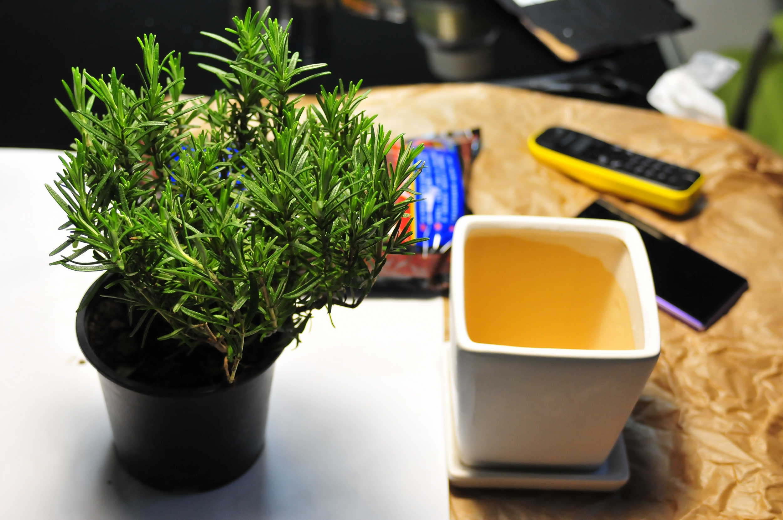 今日身體不適在家休養了半天,見有好轉决定到旺角花墟買個花盆換掉日漸茁壯的長春藤原來細小的膠吊盆,順道買了棵迷迭香和兩束鮮花。