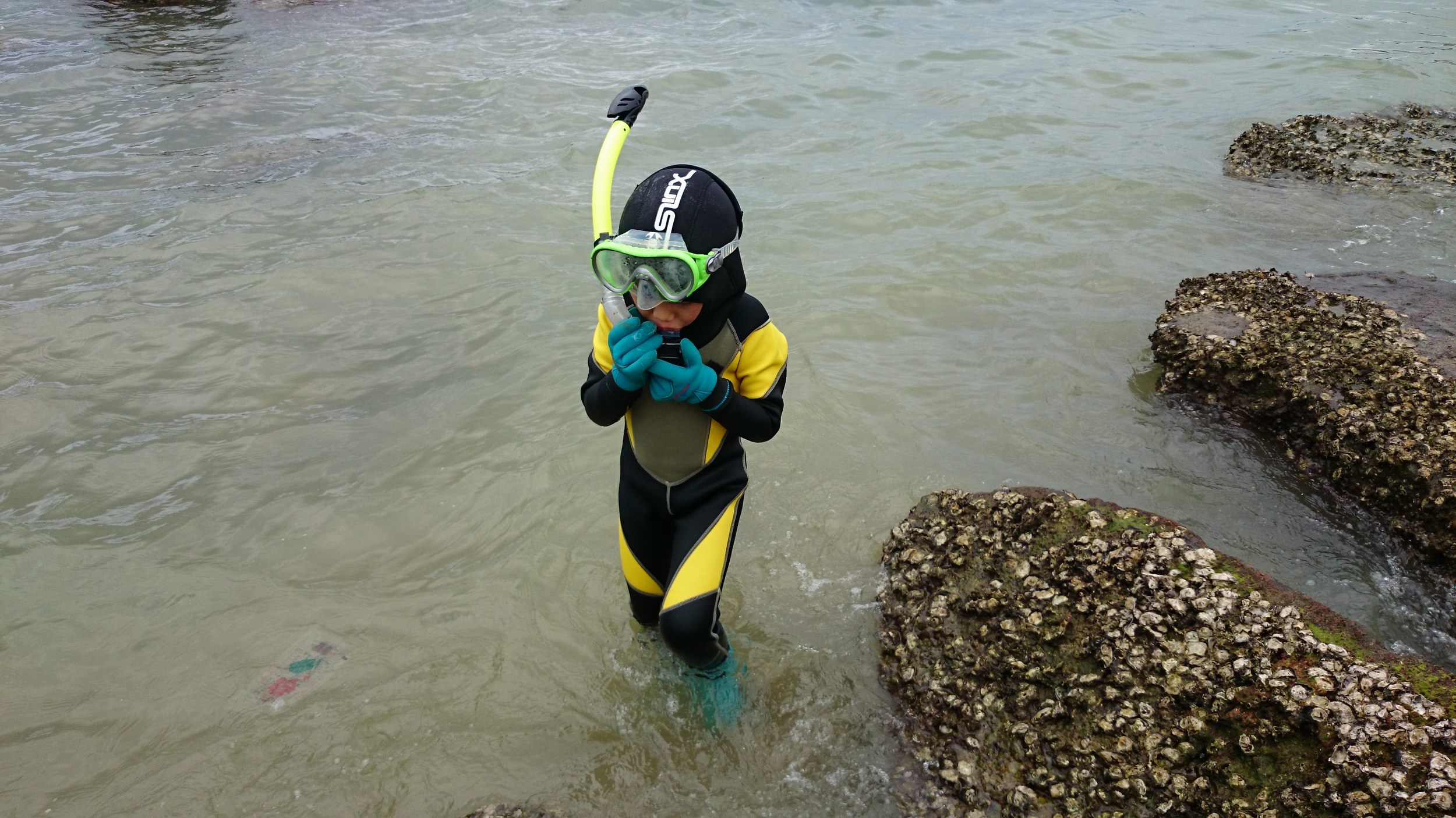 5 月 01st 老爸日記 老爸日記 又是浮潛戲水好季節 入夏了,又是水上活動好時候,今日勞動節正適合郊遊運動,於是到西貢進行今年首次浮潛熱身,只因假期人太多,為免與太多遊人逼爆擠在一個小岛中,沒去浮潛聖地橋咀岛,改在海堤邊沙灘小試高興一下。