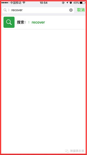 点击微信首页右上角的?号,选择“添加朋友”,然后在添加朋友界面中输入:recover