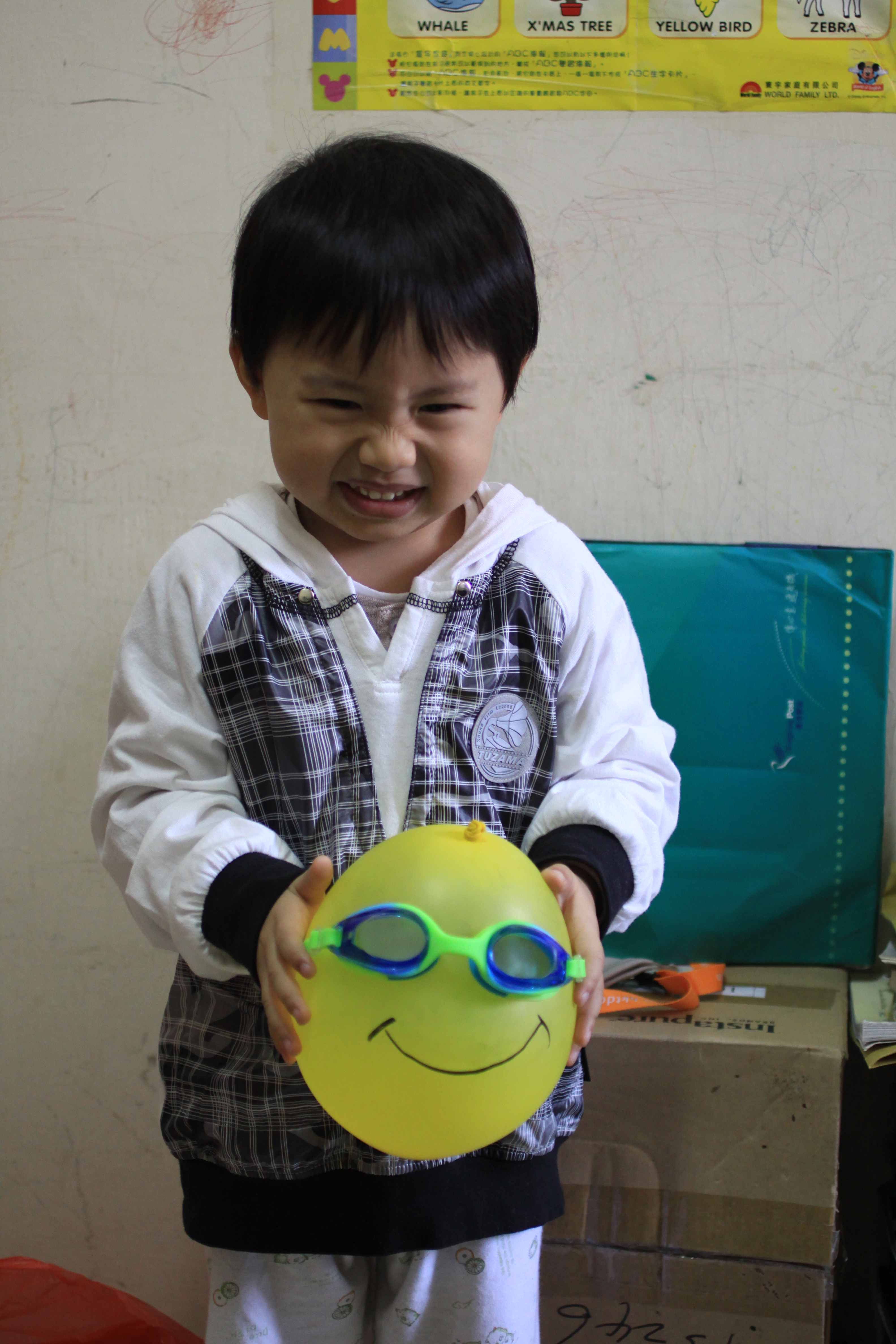 jetjet 為汽球套上泳鏡並稱之為“太陽伯伯”,於是爸爸大筆一揮,變成開心的太陽伯伯。但願新的一年所有人都能開開心心,在這個盛傳的末日之年能掃走所有陰霾及不快之事,做該做和想做的事,開心有意義地生活,那就算是世界末日又何妨。